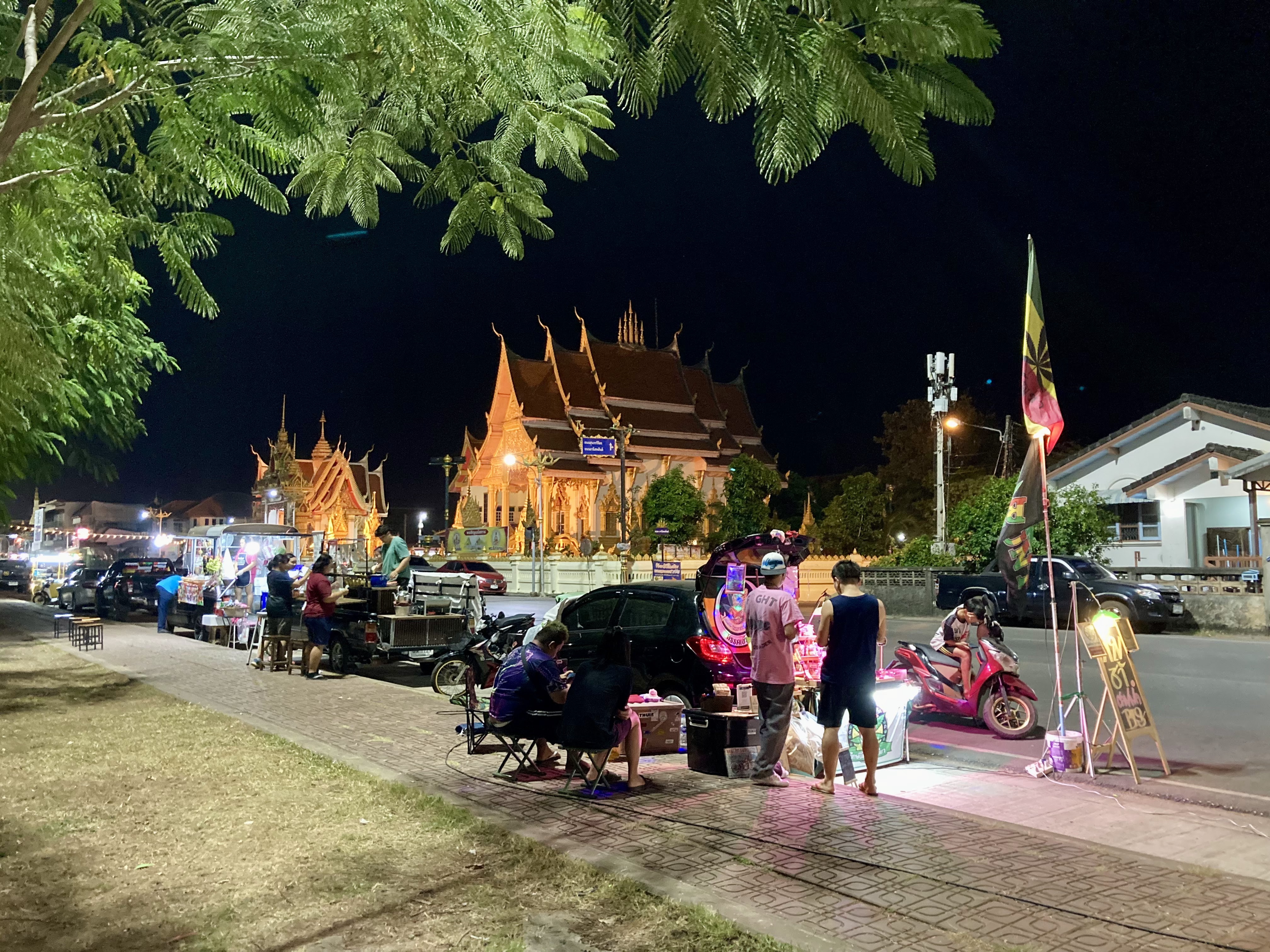 So then, Nakhon Phanom, a bigger town. But this one is a real pleasure, totally something else than Mukdahan. Also, the scenery is stunning, with of course the Mekong riverside, and on the Lao side a magnificent karst mountain range! We enjoyed a good walk to town, and strolling around the night market on walking street - including a good local meal (khanom chin, yummy).